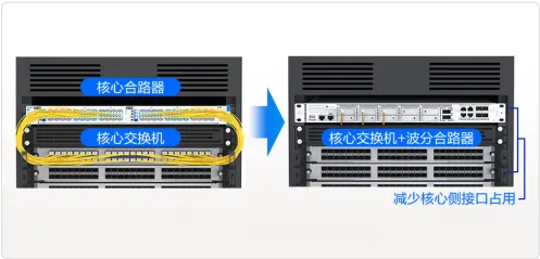 推出80G高密彩光,波分合路器集成到核心交换机 核心侧2层变1层