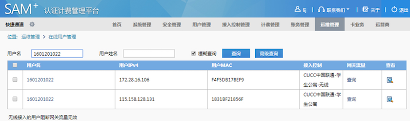 2、师生再次入网,无需输入用户名口令,系统自动匹配用户名、密码和运营商属性,实现上网策略控制: