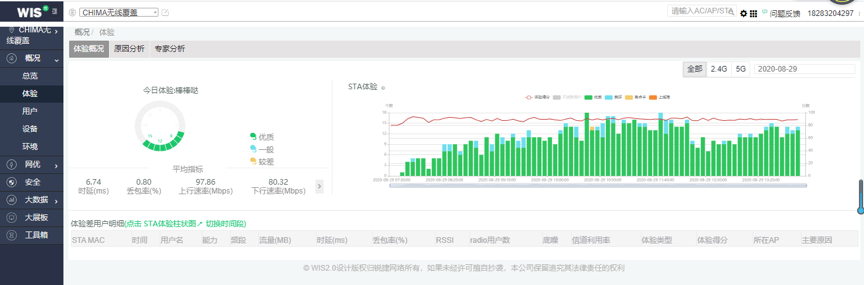 对于现场Wi-Fi体验,客户也是赞不绝口,我们通过尊龙时凯RG-WIS无线智能服务平台可以实时看到,现场Wi-Fi体验棒棒哒!