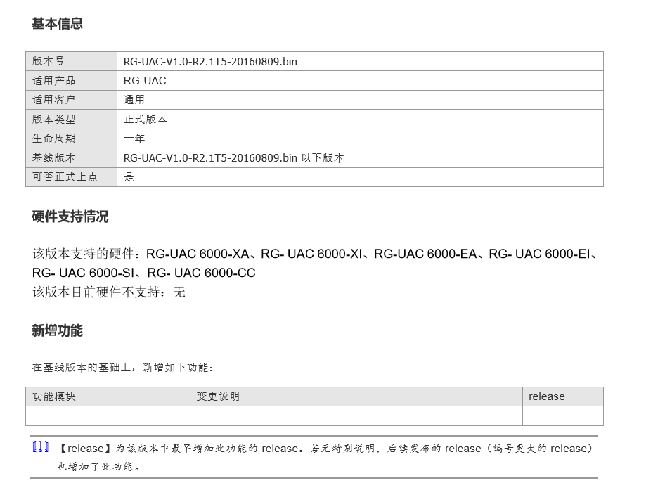 RG-UAC 6000-XA/XI/EA/EI/SI/CC系列V1.0-R2.1T5-20160809软件版本