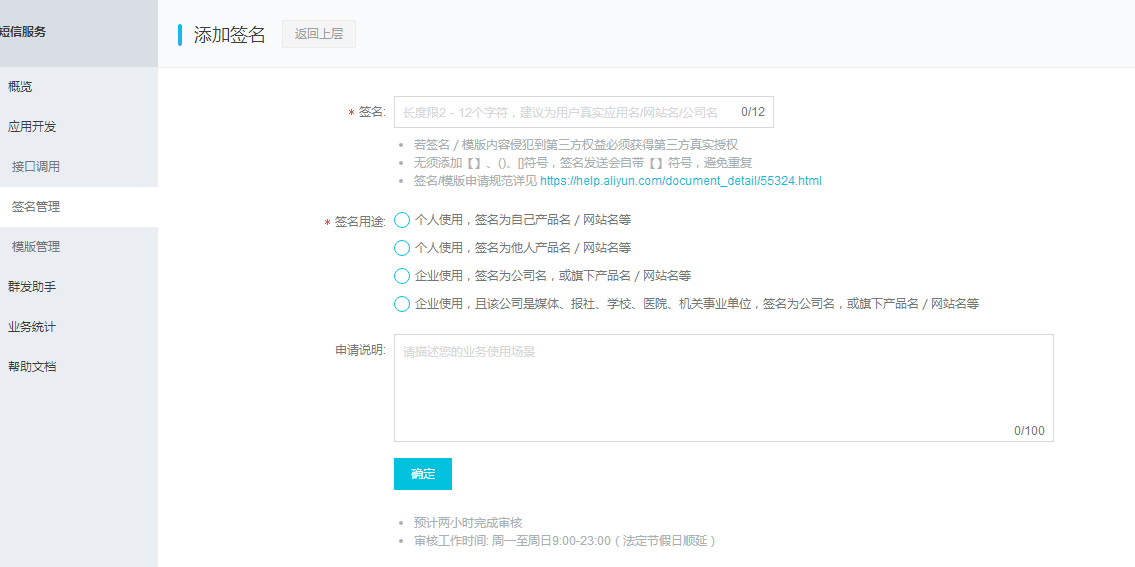 在配置短信认证之前,需要先完成阿里短信平台的注册和配置。当前阿里短信平台已迁移到阿里云中,如有使用用旧版阿里大于短信平台的客户请参照旧版的实现手册。本文档以最新的阿里云短信云平台为为例。