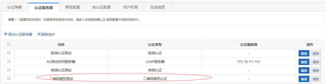 账号密码认证需要先配置相应的账号,请参照“本地服务器认证”--->“本地账号密码认证”章节。这里直接从配置二维码售权认证服务器开始。